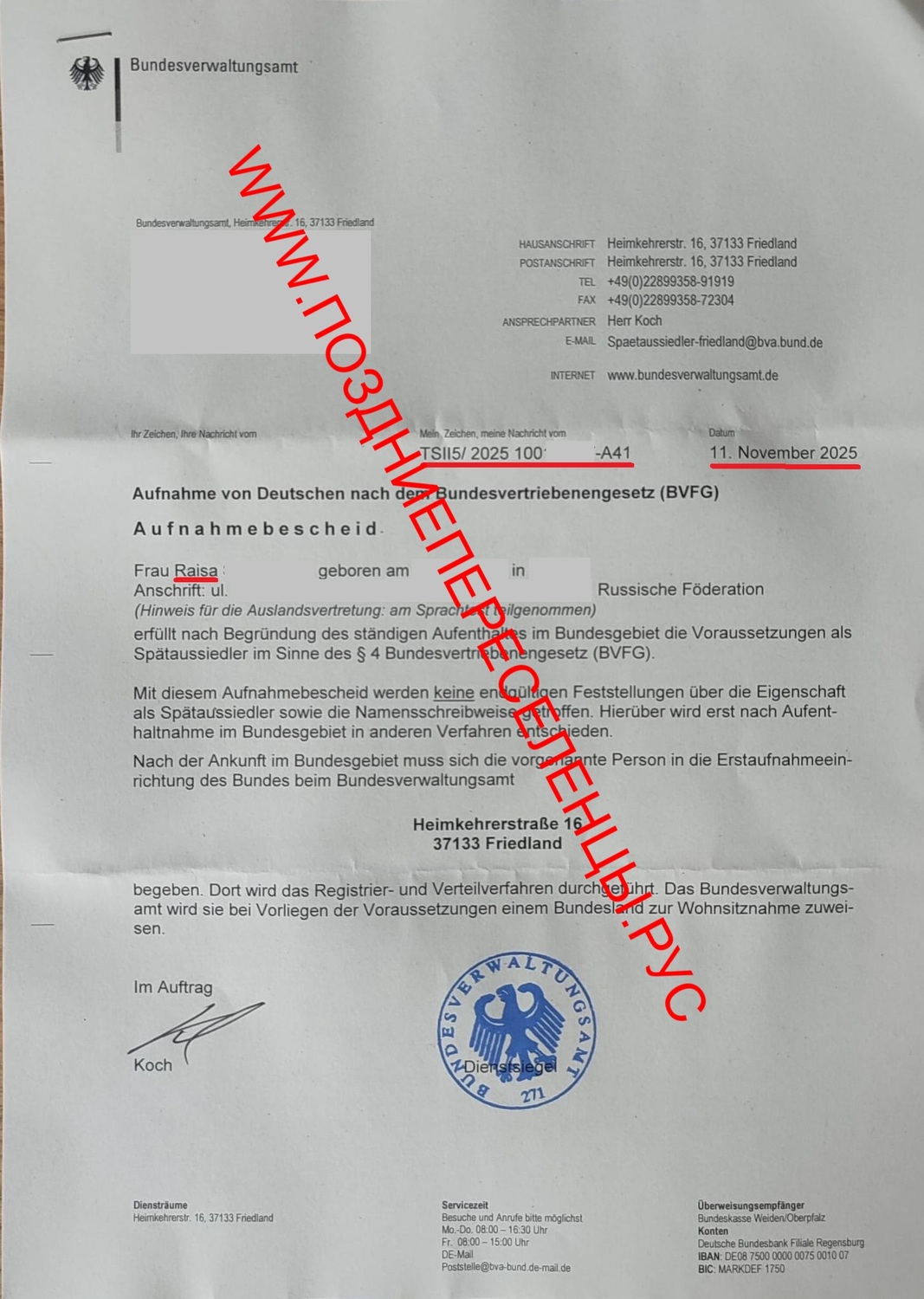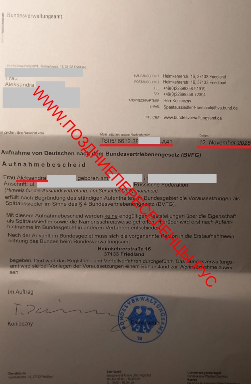 20.01.2025 запрос дополнительных документов, а именно ZERTIFIKAT B1 des Goethe-Institutes все 4 модуля и справки о реабилитации.